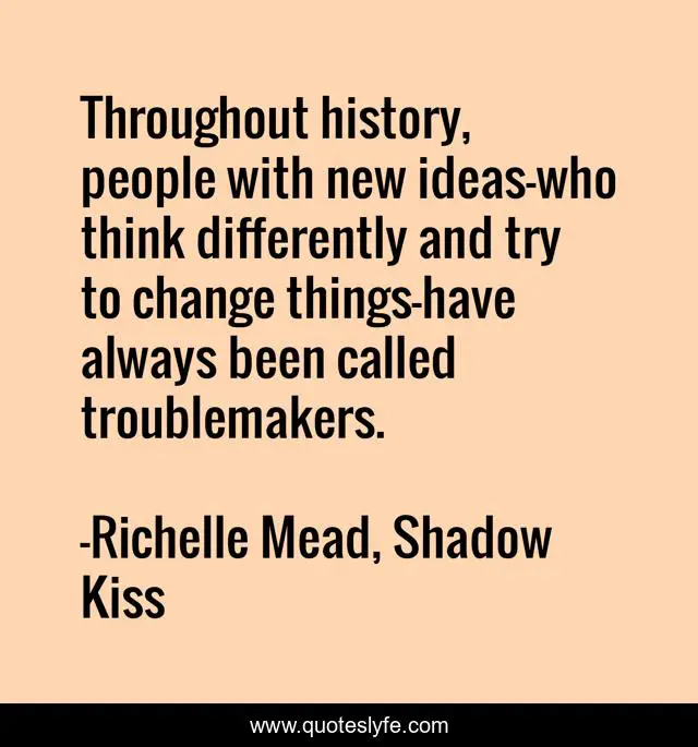 This page presents the quote "Throughout history, people with new ideas—who think differently and try to change things—have always been called troublemakers.". Author of this quote is Richelle Mead, Shadow Kiss. .