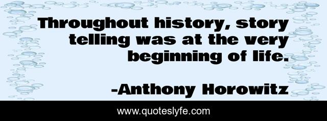 This page presents the quote "Throughout history, story telling was at the very beginning of life.". Author of this quote is Anthony Horowitz. This quote is about life, beginning, story,.