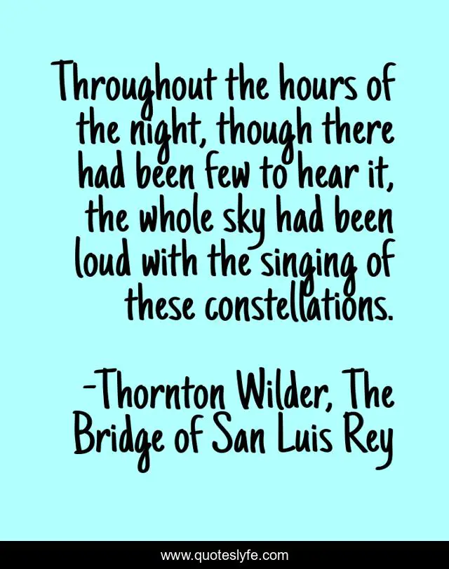 "Thornton Wilder, The Bridge of San Luis Rey Quotes." Quoteslyfe.com, 2025. Mon. 08 Dec. 2025. <https://www.quoteslyfe.com/quote/Throughout-the-hours-of-the-night-though-195407>.