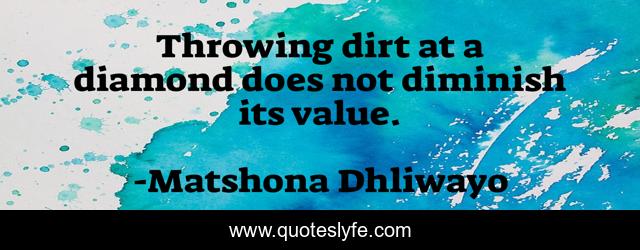 "Matshona Dhliwayo Quotes." Quoteslyfe.com, 2025. Fri. 05 Dec. 2025. <https://www.quoteslyfe.com/quote/Throwing-dirt-at-a-diamond-does-not-14702>.