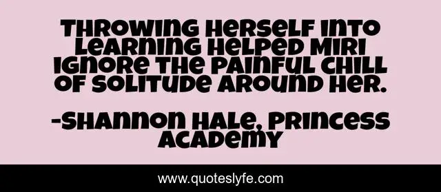 This page presents the quote "Throwing herself into learning helped Miri ignore the painful chill of solitude around her.". Author of this quote is Shannon Hale, Princess Academy. This quote is about loneliness, education, school, learning,.