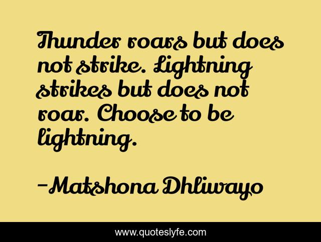 "Matshona Dhliwayo Quotes." Quoteslyfe.com, 2025. Sat. 06 Dec. 2025. <https://www.quoteslyfe.com/quote/Thunder-roars-but-does-not-strike-Lightning-57999>.