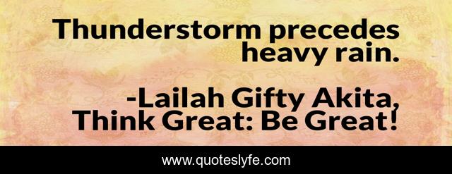"Lailah Gifty Akita, Think Great: Be Great! Quotes." Quoteslyfe.com, 2025. Sun. 07 Dec. 2025. <https://www.quoteslyfe.com/quote/Thunderstorm-precedes-heavy-rain-140348>.