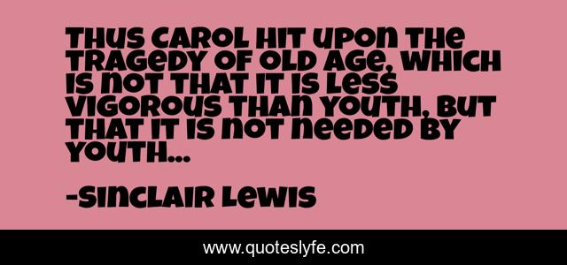This page presents the quote "Thus Carol hit upon the tragedy of old age, which is not that it is less vigorous than youth, but that it is not needed by youth...". Author of this quote is Sinclair Lewis. This quote is about youth, age,.