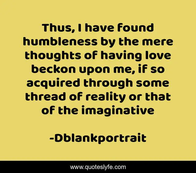 This page presents the quote "Thus, I have found humbleness by the mere thoughts of having love beckon upon me, if so acquired through some thread of reality or that of the imaginative". Author of this quote is Dblankportrait. This quote is about love, affection,.