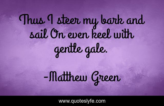This page presents the quote "Thus I steer my bark and sail On even keel with gentle gale.". Author of this quote is Matthew Green. .