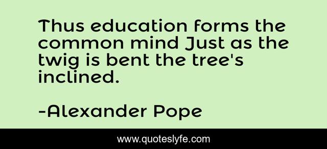 This page presents the quote "Thus education forms the common mind Just as the twig is bent the tree's inclined.". Author of this quote is Alexander Pope. .