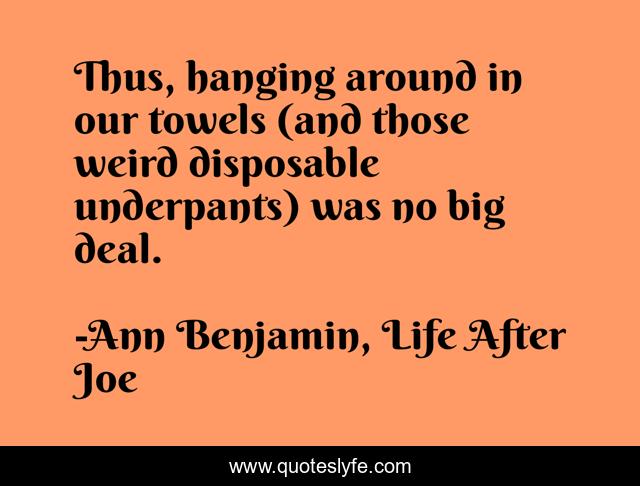 "Ann Benjamin, Life After Joe Quotes." Quoteslyfe.com, 2025. Fri. 05 Dec. 2025. <https://www.quoteslyfe.com/quote/Thus-hanging-around-in-our-towels-and-149458>.