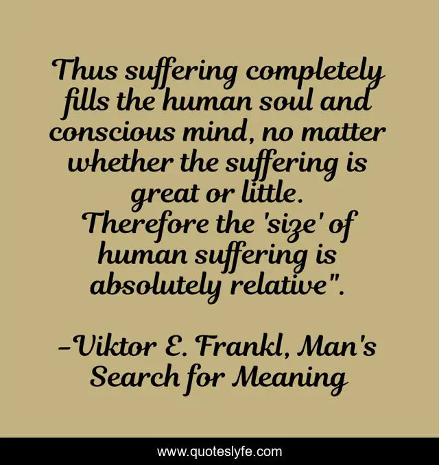"Viktor E. Frankl, Man's Search for Meaning Quotes." Quoteslyfe.com, 2025. Sat. 06 Dec. 2025. <https://www.quoteslyfe.com/quote/Thus-suffering-completely-fills-the-human-soul-103989>.