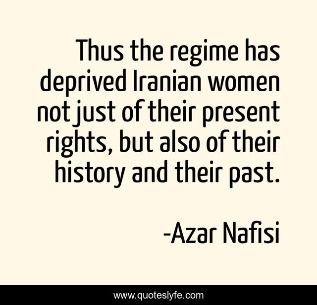 This page presents the quote "Thus the regime has deprived Iranian women not just of their present rights, but also of their history and their past.". Author of this quote is Azar Nafisi. This quote is about past, present, women,.