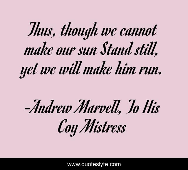"Andrew Marvell, To His Coy Mistress Quotes." Quoteslyfe.com, 2025. Sun. 07 Dec. 2025. <https://www.quoteslyfe.com/quote/Thus-though-we-cannot-make-our-sun-24652>.