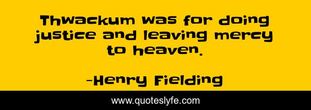 This page presents the quote "Thwackum was for doing justice and leaving mercy to heaven.". Author of this quote is Henry Fielding. .