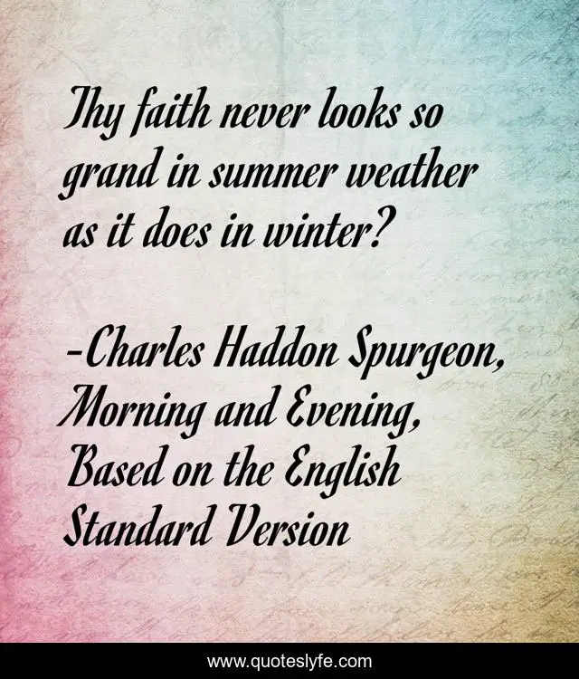 This page presents the quote "Thy faith never looks so grand in summer weather as it does in winter?". Author of this quote is Charles Haddon Spurgeon, Morning and Evening, Based on the English Standard Version. This quote is about trials, suffering, discipleship,.
