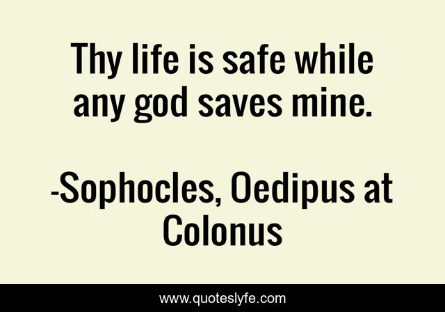 "Sophocles, Oedipus at Colonus Quotes." Quoteslyfe.com, 2025. Mon. 08 Dec. 2025. <https://www.quoteslyfe.com/quote/Thy-life-is-safe-while-any-god-225110>.
