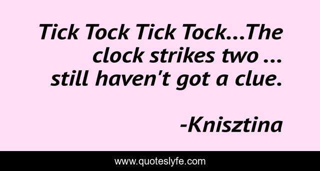This page presents the quote "Tick Tock Tick Tock...The clock strikes two ... still haven't got a clue.". Author of this quote is Knisztina. .