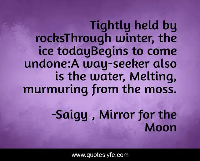 "Saigyō, Mirror for the Moon Quotes." Quoteslyfe.com, 2025. Mon. 08 Dec. 2025. <https://www.quoteslyfe.com/quote/Tightly-held-by-rocksThrough-winter-the-ice-195069>.