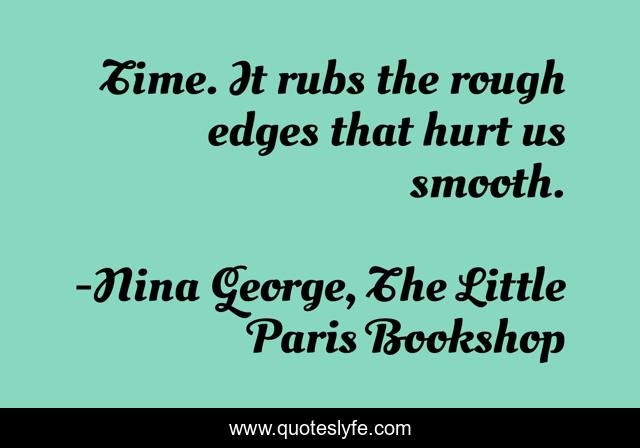 "Nina George, The Little Paris Bookshop Quotes." Quoteslyfe.com, 2025. Sat. 06 Dec. 2025. <https://www.quoteslyfe.com/quote/Time-It-rubs-the-rough-edges-that-178961>.