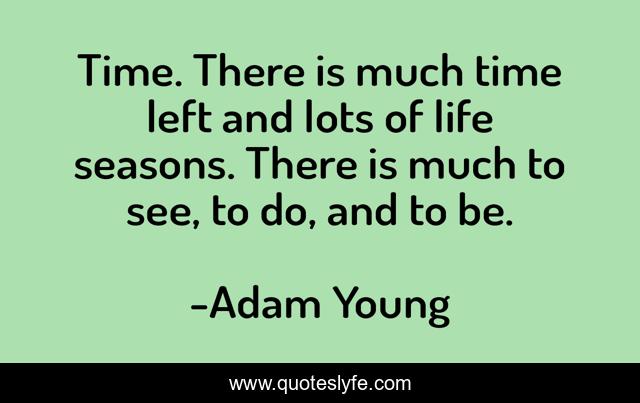 This page presents the quote "Time. There is much time left and lots of life seasons. There is much to see, to do, and to be.". Author of this quote is Adam Young. This quote is about enthusiasm, life, inspirational, time,.