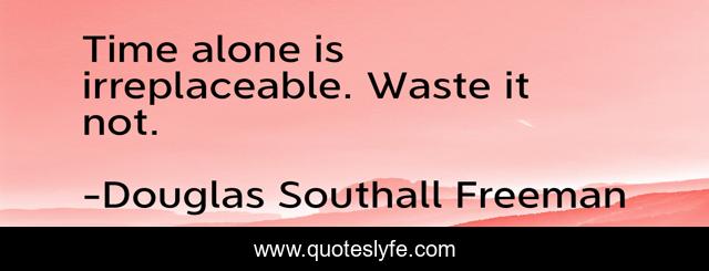 This page presents the quote "Time alone is irreplaceable. Waste it not.". Author of this quote is Douglas Southall Freeman. This quote is about irreplaceable, waste, time,.