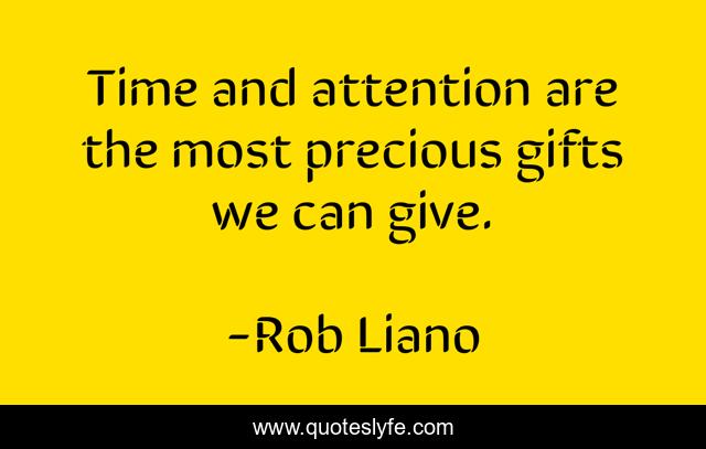 This page presents the quote "Time and attention are the most precious gifts we can give.". Author of this quote is Rob Liano. This quote is about relationships, life, love, attention, growth, connectedness, time, life-and-living, affection,.