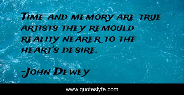 This page presents the quote "Time and memory are true artists they remould reality nearer to the heart's desire.". Author of this quote is John Dewey. This quote is about heart, memory, reality,.