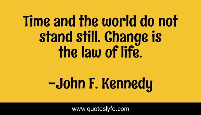 This page presents the quote "Time and the world do not stand still. Change is the law of life.". Author of this quote is John F. Kennedy. This quote is about politics, change,.