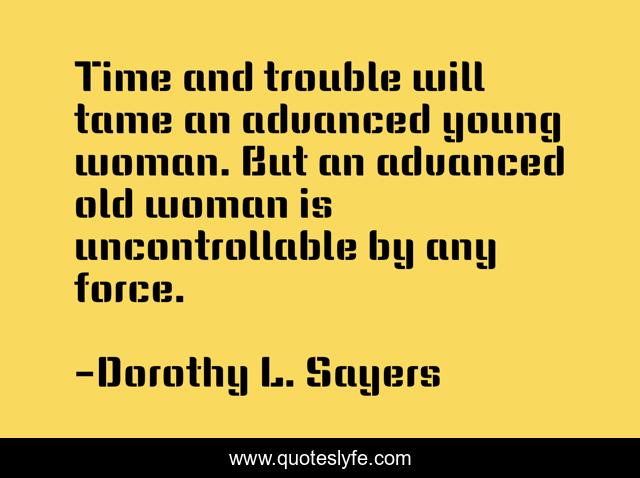 This page presents the quote "Time and trouble will tame an advanced young woman. But an advanced old woman is uncontrollable by any force.". Author of this quote is Dorothy L. Sayers. .