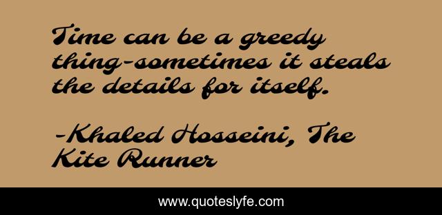 This page presents the quote "Time can be a greedy thing-sometimes it steals the details for itself.". Author of this quote is Khaled Hosseini, The Kite Runner. .