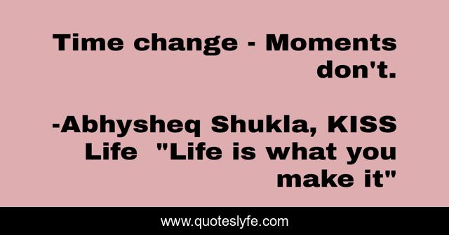 "Abhysheq Shukla, KISS Life "Life is what you make it" Quotes." Quoteslyfe.com, 2025. Sat. 06 Dec. 2025. <https://www.quoteslyfe.com/quote/Time-change-Moments-don-t-81689>.