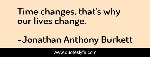 "Jonathan Anthony Burkett Quotes." Quoteslyfe.com, 2025. Fri. 05 Dec. 2025. <https://www.quoteslyfe.com/quote/Time-changes-that-s-why-our-lives-156670>.