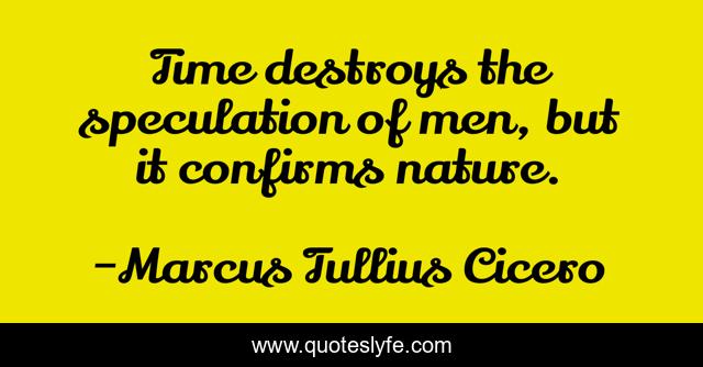 This page presents the quote "Time destroys the speculation of men, but it confirms nature.". Author of this quote is Marcus Tullius Cicero. This quote is about speculation, men, time,.