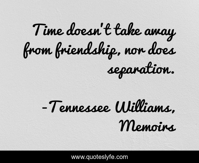 "Tennessee Williams, Memoirs Quotes." Quoteslyfe.com, 2025. Sat. 06 Dec. 2025. <https://www.quoteslyfe.com/quote/Time-doesn-t-take-away-from-friendship-38356>.