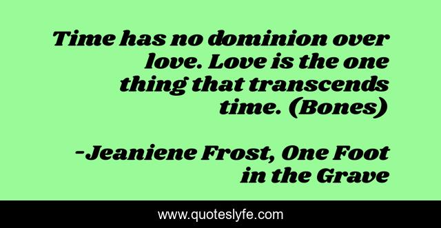 This page presents the quote "Time has no dominion over love. Love is the one thing that transcends time. (Bones)". Author of this quote is Jeaniene Frost, One Foot in the Grave. This quote is about love, affection, time,.