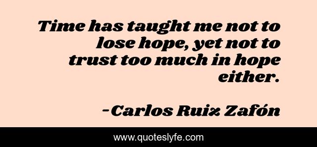 This page presents the quote "Time has taught me not to lose hope, yet not to trust too much in hope either.". Author of this quote is Carlos Ruiz Zafón. This quote is about hope, time,.