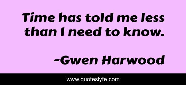 This page presents the quote "Time has told me less than I need to know.". Author of this quote is Gwen Harwood. .