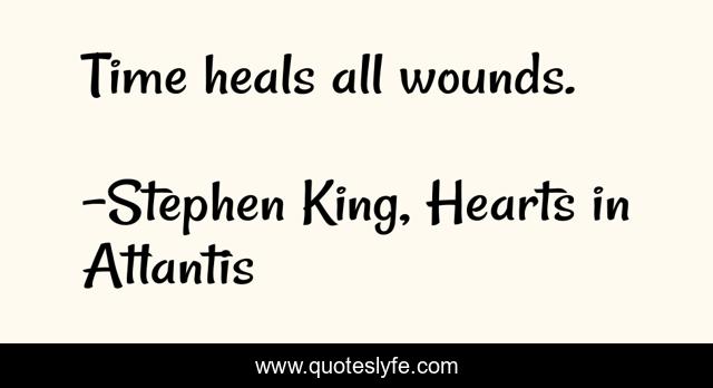 "Stephen King, Hearts in Atlantis Quotes." Quoteslyfe.com, 2025. Mon. 08 Dec. 2025. <https://www.quoteslyfe.com/quote/Time-heals-all-wounds-38474>.
