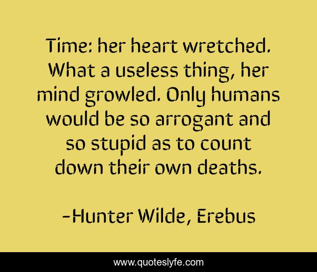 This page presents the quote "Time: her heart wretched. What a useless thing, her mind growled. Only humans would be so arrogant and so stupid as to count down their own deaths.". Author of this quote is Hunter Wilde, Erebus. .