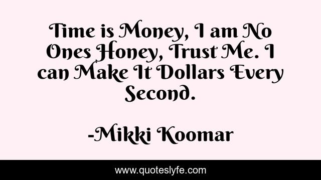 This page presents the quote "Time is Money, I am No Ones Honey, Trust Me. I can Make It Dollars Every Second.". Author of this quote is Mikki Koomar. This quote is about behaviour, enthusiasm, attitude, inspirational,.