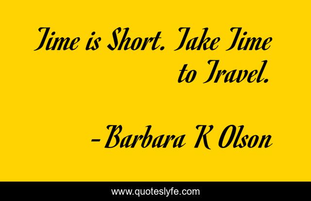 "Barbara K Olson Quotes." Quoteslyfe.com, 2025. Fri. 05 Dec. 2025. <https://www.quoteslyfe.com/quote/Time-is-Short-Take-Time-to-Travel-137178>.