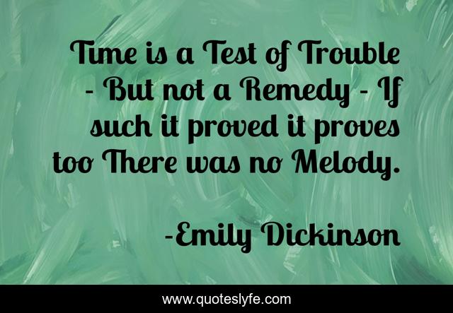 This page presents the quote "Time is a Test of Trouble - But not a Remedy - If such it proved it proves too There was no Melody.". Author of this quote is Emily Dickinson. .