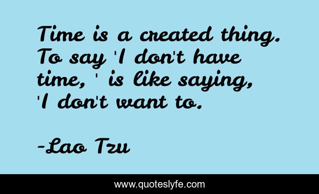 This page presents the quote "Time is a created thing. To say 'I don't have time, ' is like saying, 'I don't want to.". Author of this quote is Lao Tzu. .