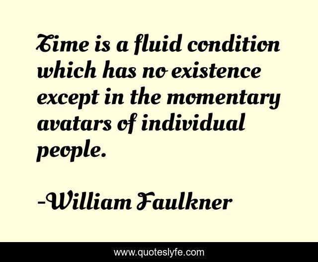 This page presents the quote "Time is a fluid condition which has no existence except in the momentary avatars of individual people.". Author of this quote is William Faulkner. This quote is about day, one,.