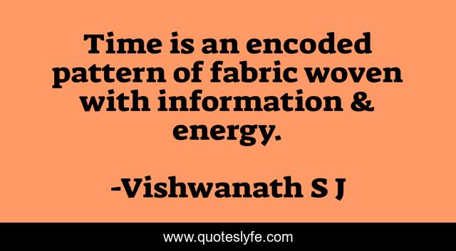 This page presents the quote "Time is an encoded pattern of fabric woven with information & energy.". Author of this quote is Vishwanath S J. This quote is about chapter, information, life, philosophy, fabric, quote, energy, time-travel, mind,.