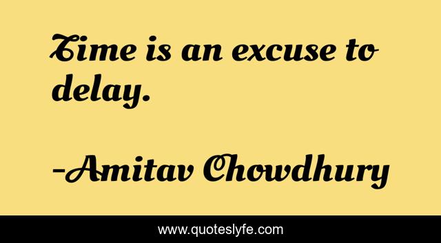 "Amitav Chowdhury Quotes." Quoteslyfe.com, 2025. Sun. 14 Dec. 2025. <https://www.quoteslyfe.com/quote/Time-is-an-excuse-to-delay-181708>.