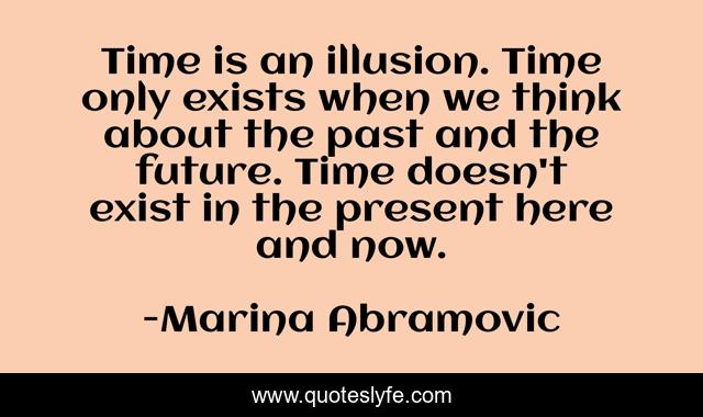 "Marina Abramovic Quotes." Quoteslyfe.com, 2025. Fri. 05 Dec. 2025. <https://www.quoteslyfe.com/quote/Time-is-an-illusion-Time-only-exists-302151>.