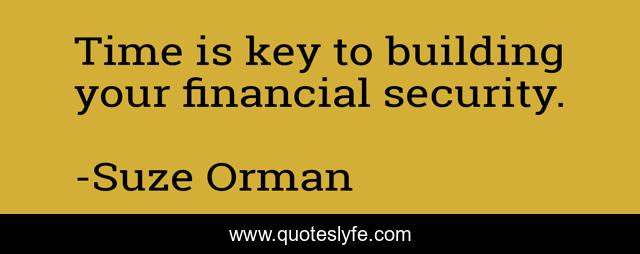 This page presents the quote "Time is key to building your financial security.". Author of this quote is Suze Orman. This quote is about building, financial,.
