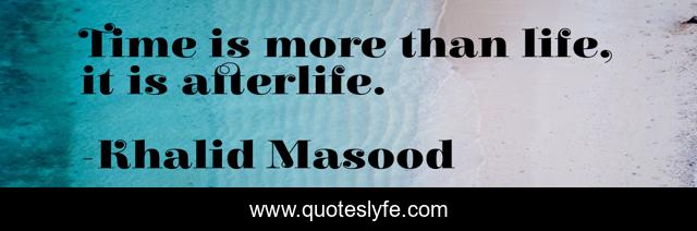 This page presents the quote "Time is more than life, it is afterlife.". Author of this quote is Khalid Masood. This quote is about afterlife, life, more-than, time,.