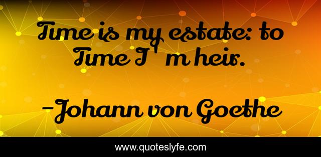 This page presents the quote "Time is my estate: to Time I'm heir.". Author of this quote is Johann von Goethe. This quote is about day, one,.
