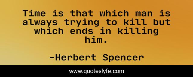This page presents the quote "Time is that which man is always trying to kill but which ends in killing him.". Author of this quote is Herbert Spencer. This quote is about day, one,.