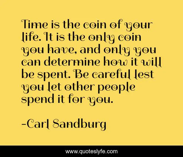 This page presents the quote "Time is the coin of your life. It is the only coin you have, and only you can determine how it will be spent. Be careful lest you let other people spend it for you.". Author of this quote is Carl Sandburg. .